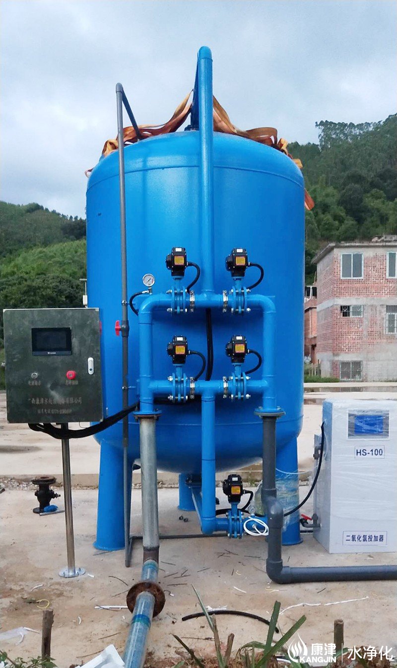 項目名稱:武鳴那致地下水凈化工程 設備名稱:10噸壓力式一體化凈水設備 工藝流程:地下水-石英砂過濾器-二氧化氯消毒 產品型號:KJ-DF-1500...