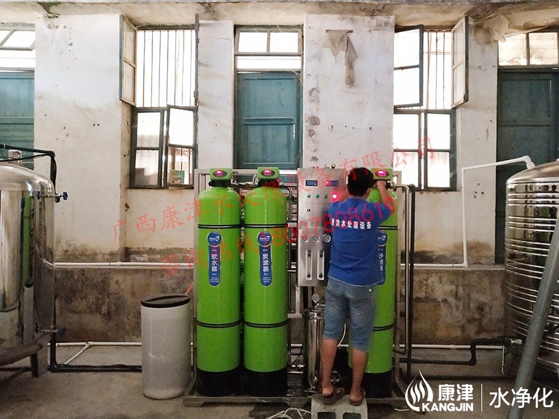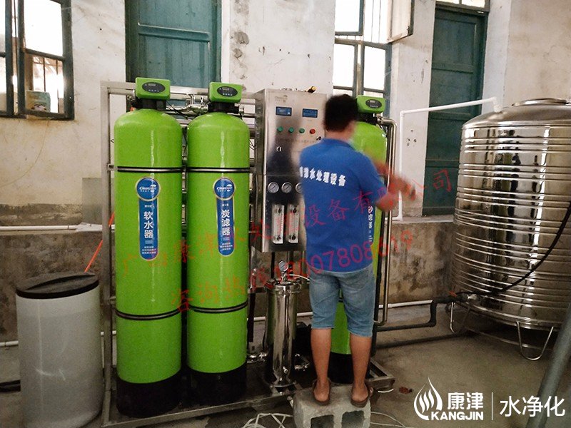 工藝流程:原水箱-原水泵-石英砂過濾器-活性炭過濾器-軟水器-精密過濾器-反滲透設備-凈水箱-變頻供水-管線機