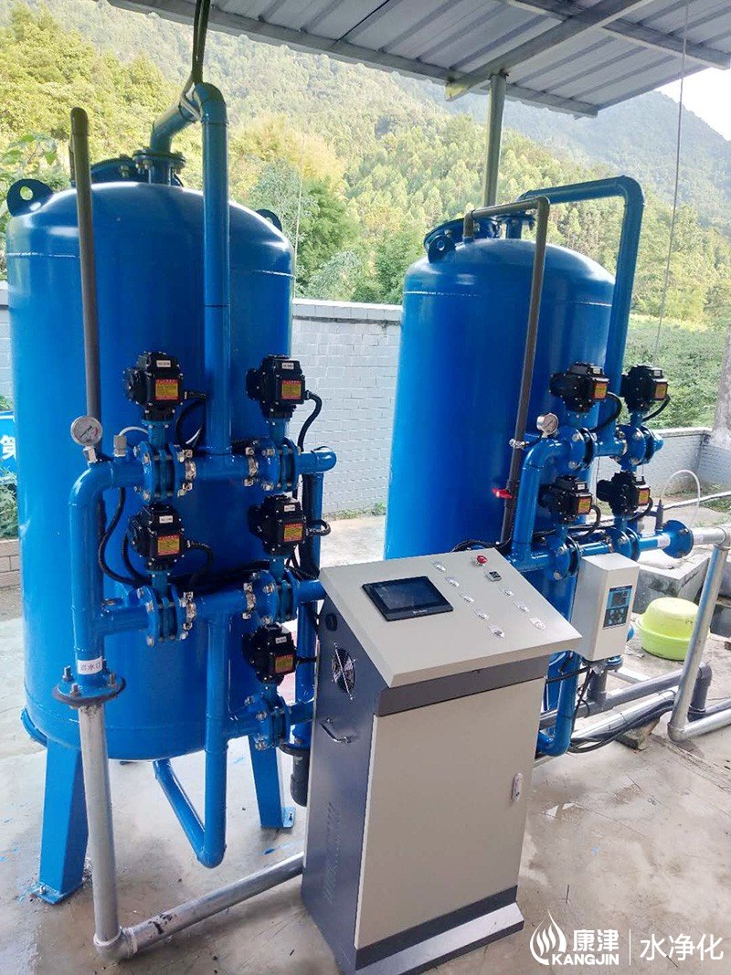 設(shè)備是壓力式的,其原理是當(dāng)原水自上而下通過(guò)濾料時(shí),水中懸浮物由于吸附和機(jī)械阻流作用被濾層表面截留下來(lái);當(dāng)水流進(jìn)濾層中間時(shí),由于濾料層中的砂粒排列的更緊密,使水中微粒有更多的機(jī)會(huì)與砂粒碰撞,于是水中凝絮物、懸浮物和砂粒表面相互粘附,水中雜質(zhì)截留在濾料層中,從而得到澄清的水質(zhì)。經(jīng)過(guò)濾后的出水懸浮物可在3毫克/升以下。