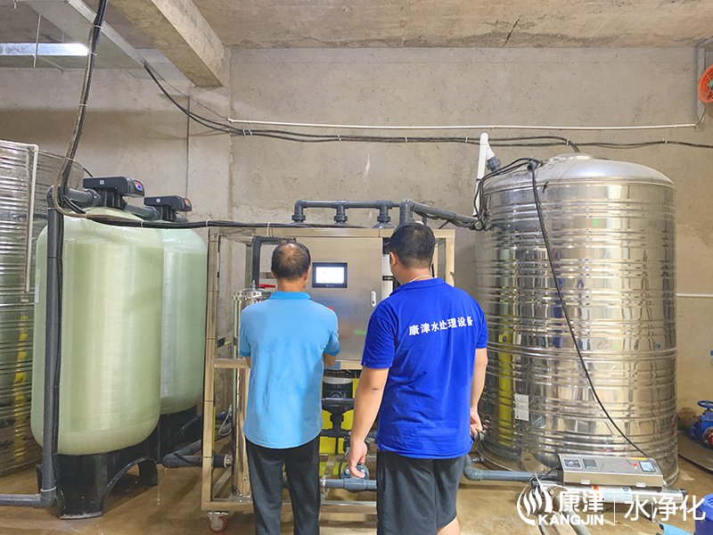 10T/H超濾水處理設備,每天產水240噸左右,業主是廣西大藤峽葛洲壩,產出的凈水用于漁業養殖使用。超濾水處理設備過濾精度為0.005到0.01微米范圍內,可有效去除水中的微粒、膠體、細菌、熱源及高分子有機物質等。設備廣泛應用于礦泉水制造、食品和醫藥生產、城市中水會用等領域。設備工藝流程。原水來自于大壩,進入保溫水箱后經高壓泵進入預處理系統,根據業主水質情況,預處理部分我們推薦的是砂濾和錳砂濾,主要是為了軟化水質。預處理產水接著進入精密過濾器,主要是PP棉過濾工作,PP棉更換成本低,一般3個月左右檢查一次,看情況更換。超濾是一種以篩分為分離原理,以壓力為推動力的膜分離過程,所以超濾前需要增加壓力泵。產出的凈水到水箱后由業主的抽水泵供應到用水點。在這里說下,我們看到成套設備有一個黃色的桶,它是負責給超濾組件加藥清洗用的,及時清理超濾膜內的雜質,保證膜元件的使用壽命。
