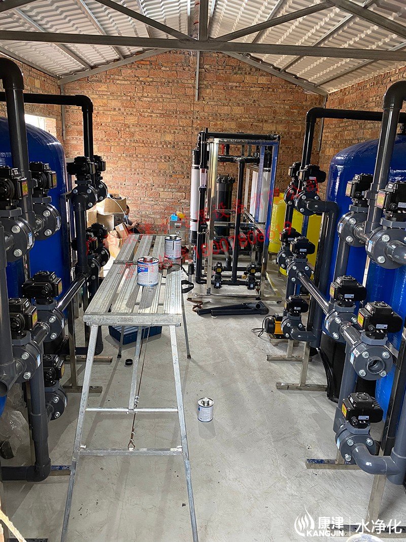 10T/H超濾水處理設備,業(yè)主是廣西防城港海水養(yǎng)殖公司,產出的凈水用于漁業(yè)養(yǎng)殖使用。超濾水處理設備過濾精度為0.005到0.01微米范圍內,可有效去除水中的微粒、膠體、細菌、熱源及高分子有機物質等。設備廣泛應用于礦泉水制造、食品和醫(yī)藥生產、城市中水會用等領域。設備工藝流程。原水來自于大壩,進入保溫水箱后經(jīng)高壓泵進入預處理系統(tǒng),根據(jù)業(yè)主水質情況,預處理部分我們推薦的是砂濾和錳砂濾,主要是為了軟化水質。預處理產水接著進入精密過濾器,主要是PP棉過濾工作,PP棉更換成本低,一般3個月左右檢查一次,看情況更換。超濾是一種以篩分為分離原理,以壓力為推動力的膜分離過程,所以超濾前需要增加壓力泵。產出的凈水到水箱后由業(yè)主的抽水泵供應到用水點。在這里說下,我們看到成套設備有一個黃色的桶,它是負責給超濾組件加藥清洗用的,及時清理超濾膜內的雜質,保證膜元件的使用壽命。