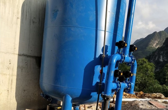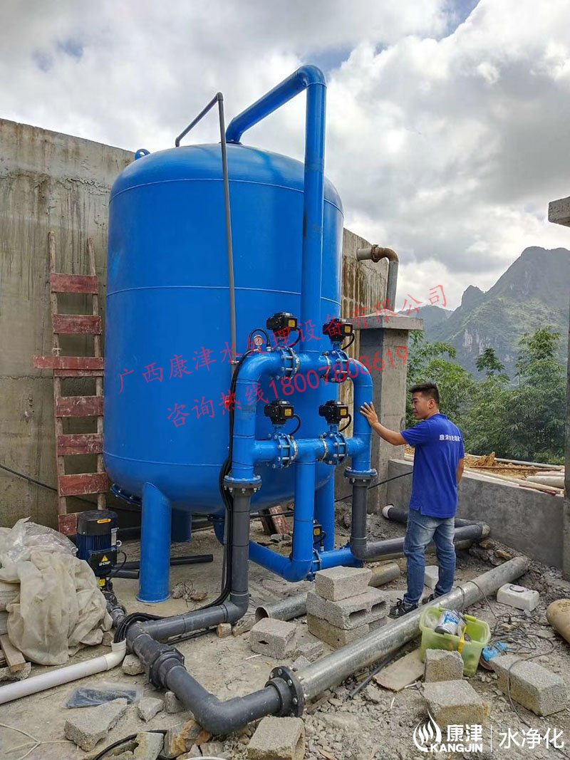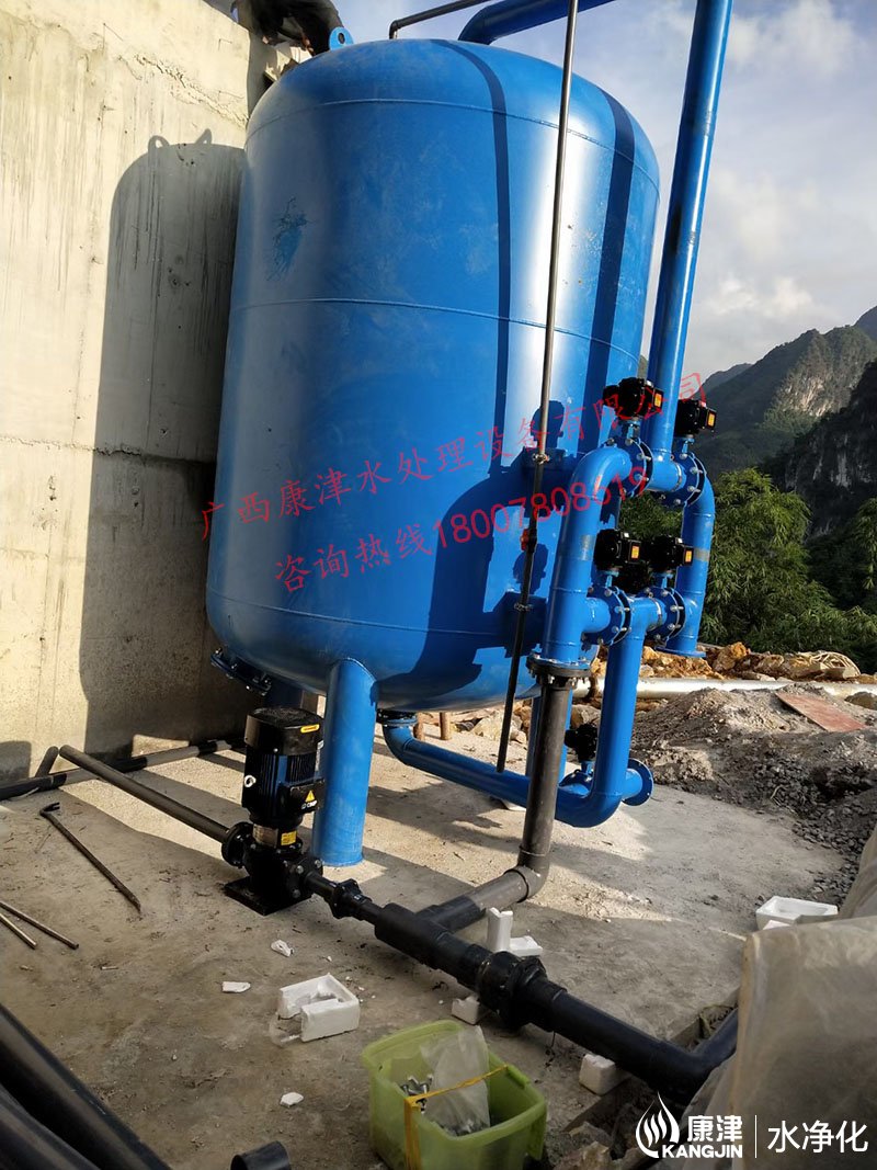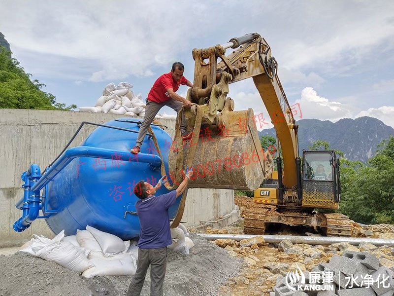項目名稱:百色市凌云縣伶站瑤族鄉40噸壓力式一體化凈水設備 設備名稱:40噸壓力式一體化凈水設備 工藝流程:河水-絮凝加藥-石英砂過濾器-二氧化氯加藥器-凈水箱-各用水點...