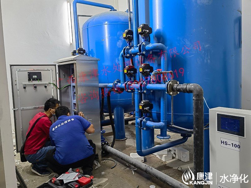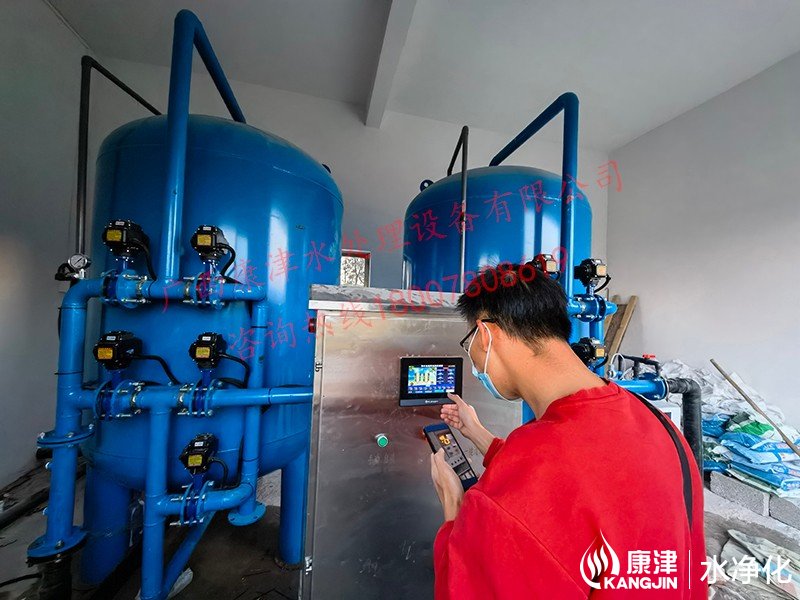 項目名稱:貴港旺嶺村地下水凈化工程 設備名稱:30噸壓力式凈水設備 工藝流程:河水-石英砂過濾器(二級過濾)-二氧化氯消毒...