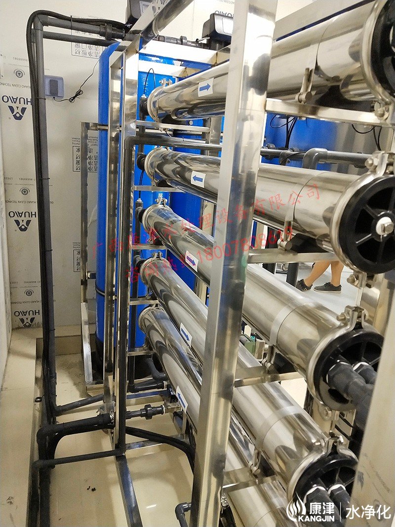 工藝流程:原水-原水泵-石英砂過濾器-活性炭過濾器-反滲透設備-精密過濾器-軟化水設備-凈水箱-變頻供水回水殺菌系統-用水點