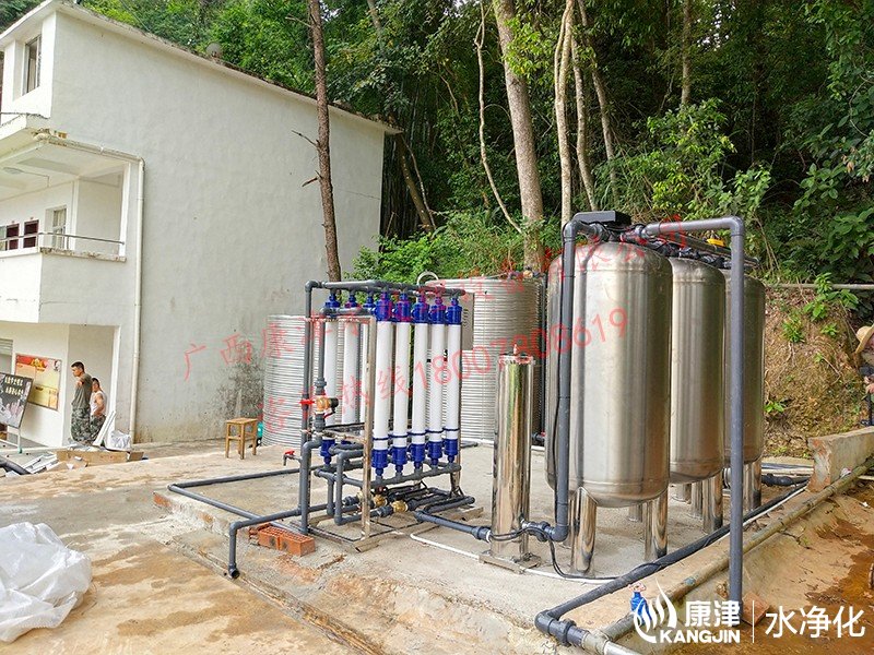 工藝流程:地下水-原水箱-原水泵-錳砂過濾器-石英砂過濾器-活性炭過濾器-精密過濾器-超濾設備-紫外線殺菌-凈水箱-變頻供水-用水點
