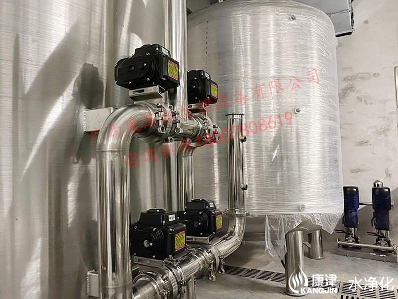 工藝流程:井水-原水箱-原水泵-石英砂過濾器-活性炭過濾器-阻垢裝置-保安過濾器-雙級反滲透設備-無菌水箱