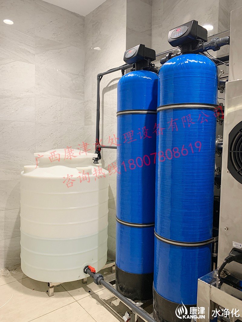 工藝流程:原水箱-原水泵-石英砂過濾器-活性炭過濾器-樹脂過濾器-精密過濾器-反滲透設備-軟水鹽-凈水箱-變頻供水回水殺菌系統-用水點