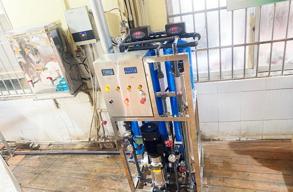 項目名稱:廣西農(nóng)墾農(nóng)場0.5噸反滲透純凈水設(shè)備 設(shè)備名稱:0.5噸反滲透純凈水設(shè)備 工藝流程:原水箱-原水泵-石英砂過濾器-活性炭過濾器-精密過濾器-反滲透設(shè)備-凈水箱-各點用水...
