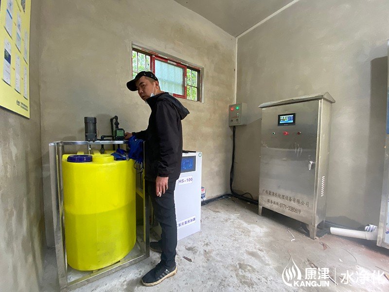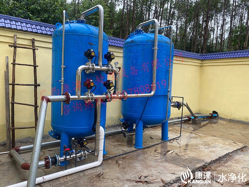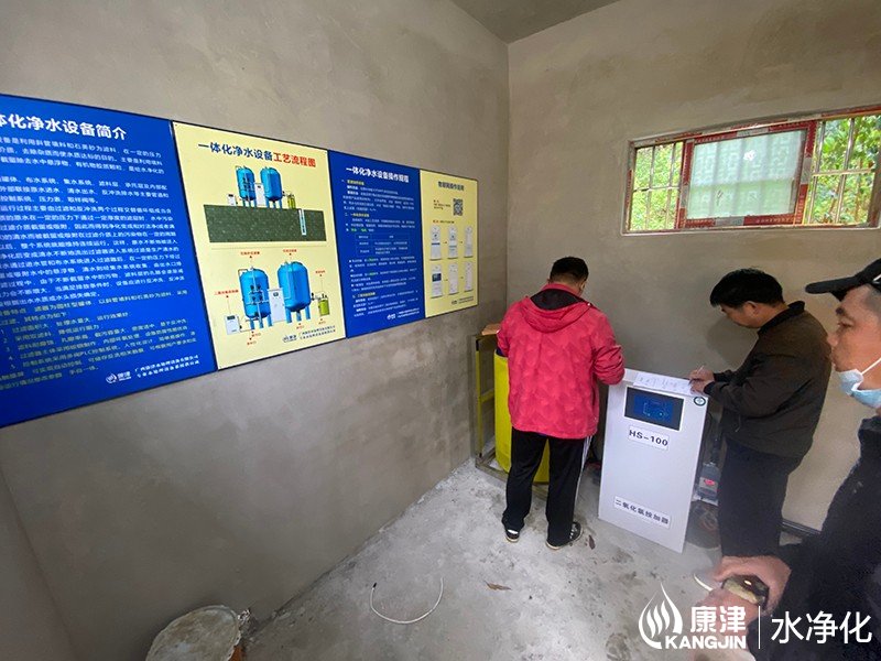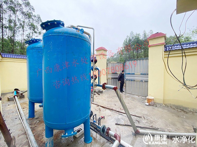 項目名稱:農村飲水安全鞏固提升工程 設備名稱:貴港市三六村10噸壓力式一體化凈水設備 工藝流程:河水-絮凝加藥-沉淀過濾器-石英砂過濾器-二氧化氯消毒...