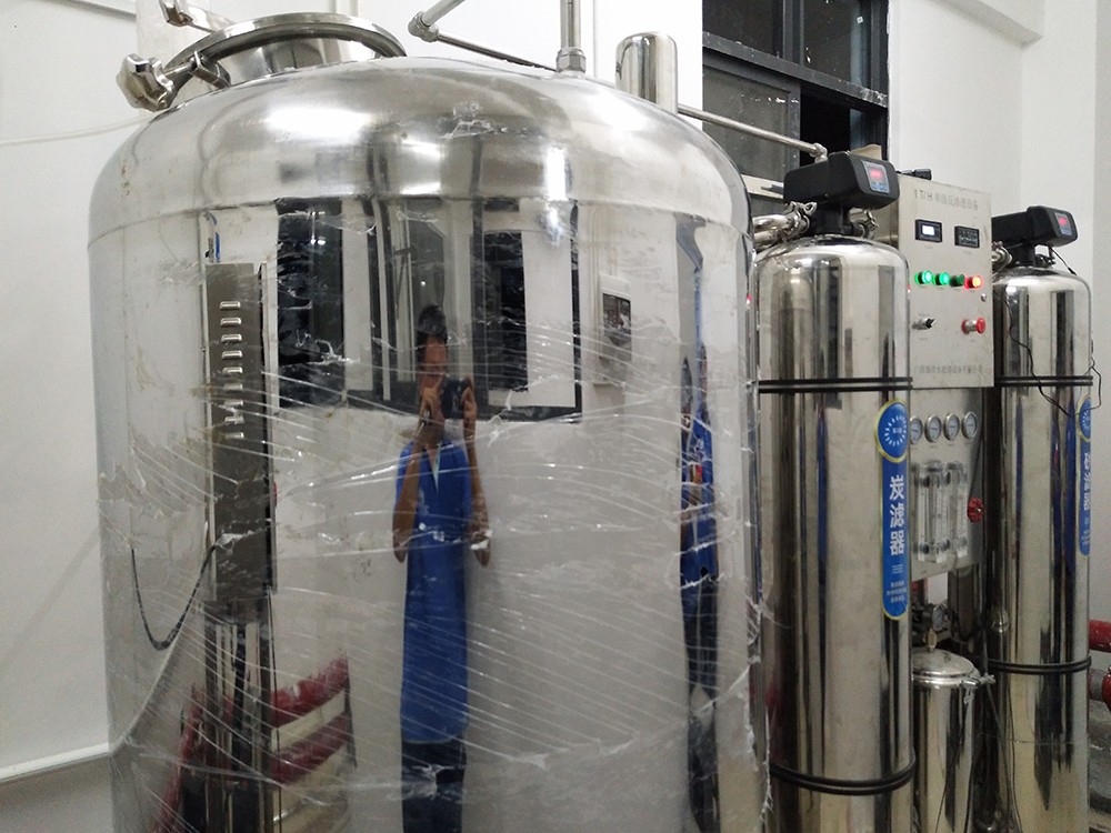 ①預處理系統;②反滲透系統;③儲水系統;④殺菌消毒系統;⑤供水系統;⑥回水處理系統;⑦精密過濾系統;⑧控制系統