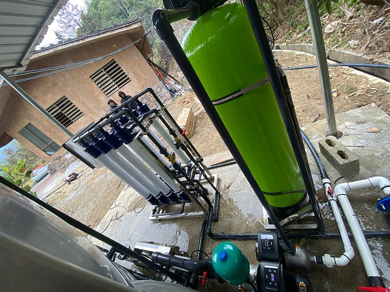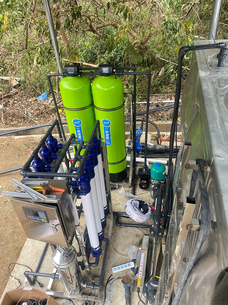 本方案主要針對原水為河水,以河水為飲用水源的地區(qū),常常在雨季會遇到水質(zhì)渾濁發(fā)黃問題。河水通常比較渾濁,水面漂浮臟東西、樹葉、水藻等,尤其在暴雨季節(jié),水中泥沙量增加,雜質(zhì)多,濁度、色度、氣味、細菌含量超標,因此必須使用專業(yè)凈水設(shè)備處理后才能達到生活飲用的目的。我們對河水的凈化主要是除去水中雜質(zhì),包括以下幾種:泥沙、大分子顆粒雜質(zhì)、懸浮物、藻類、膠體,去除污染色度、異味、微生物、細菌、病毒等,有的源水會含有HCO、Ca 、SO 、Cl 、Na 、Mg 和K。為了將河水指標達到生活用水標準,通過康津超濾設(shè)備進而得到凈化。康津水處理為根據(jù)實際用途情況制定以下解決方案。用水人數(shù)大約在50至100人,用水處理量每小時約4噸。