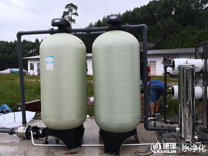 工藝流程:山泉水→原水箱→原水泵→石英砂過濾器→活性炭過濾器→(阻垢劑加藥裝置)→保安過濾器→高壓泵